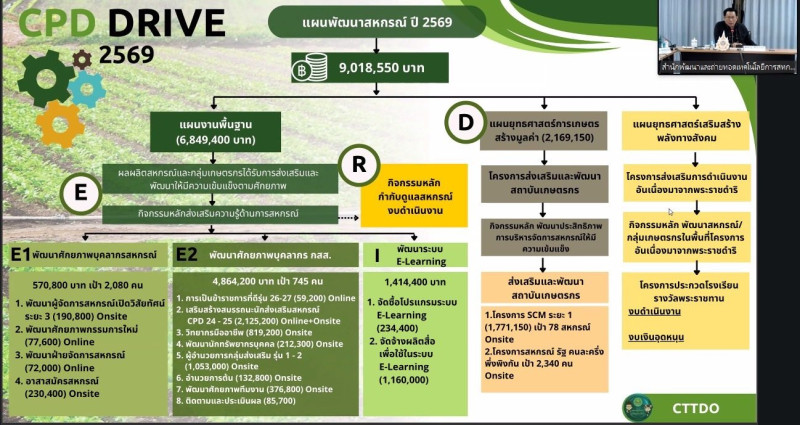 ถ่ายทอดสัญญาณผ่านระบบ Zoom Meeting ณ ห้องประชุม ฝ 101 ชั้น 1 อาคารฝึกอบรมส่วนกลาง สำนักพัฒนาและถ่ายทอดเทคโนโลยีการสหกรณ์