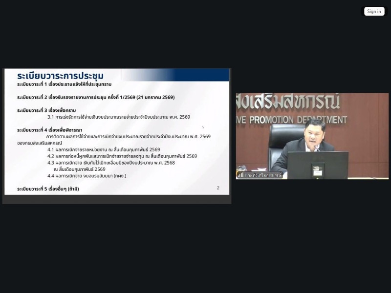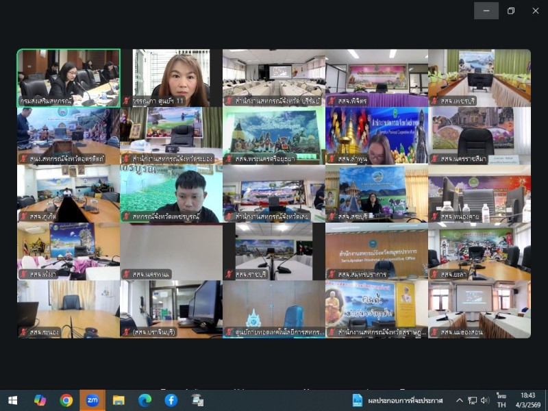 ถ่ายทอดสัญญาณผ่านระบบ ZOOM Meeting จากห้องประชุม 226 ชั้น 2 อาคาร 1 กรมส่งเสริมสหกรณ์