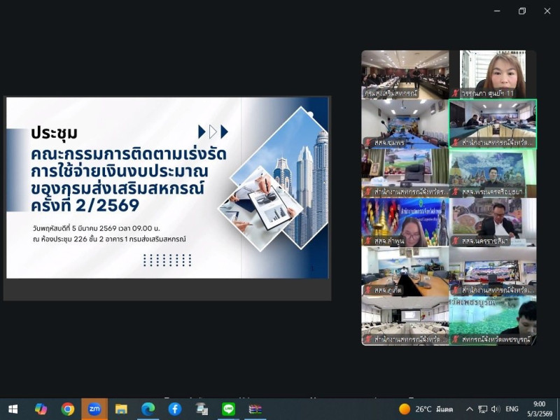ร่วมประชุมคณะกรรมการติดตามเร่งรัดการใช้จ่ายเงินงบประมาณของกรมส่งเสริมสหกรณ์ ครั้งที่ 2/2569 เพื่อตรวจสอบ ติดตามผลการเบิกจ่ายงบประมาณรายจ่าย ประจำปีงบประมาณ พ.ศ. 2569 อย่างใกล้ชิด และให้แนวทางการทำงาน ทำให้การเบิกจ่าย และใช้จ่ายงบประมาณของกรมส่งเสริมสหกรณ์เป็นไปอย่างมีประสิทธิภาพสูงสุด