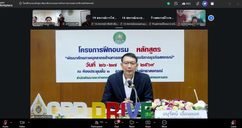โครงการฝึกอบรม หลักสูตร “พัฒนาศักยภาพบุคลากรด้านการตลาดและการบริหารธุรกิจสหกรณ์” จัดขึ้นระหว่างวันที่ 26 - 27 มีนาคม 2569 โดย สำนักพัฒนาและถ่ายทอดเทคโนโลยีการสหกรณ์
