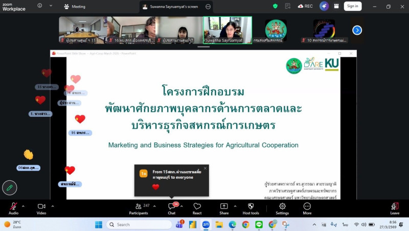 โครงการฝึกอบรม หลักสูตร “พัฒนาศักยภาพบุคลากรด้านการตลาดและการบริหารธุรกิจสหกรณ์” จัดขึ้นระหว่างวันที่ 26 - 27 มีนาคม 2569 โดย สำนักพัฒนาและถ่ายทอดเทคโนโลยีการสหกรณ์